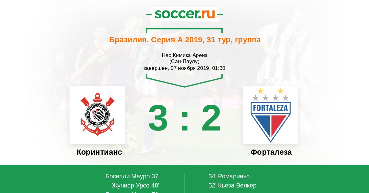 Протокол матча Коринтианс против Форталеза