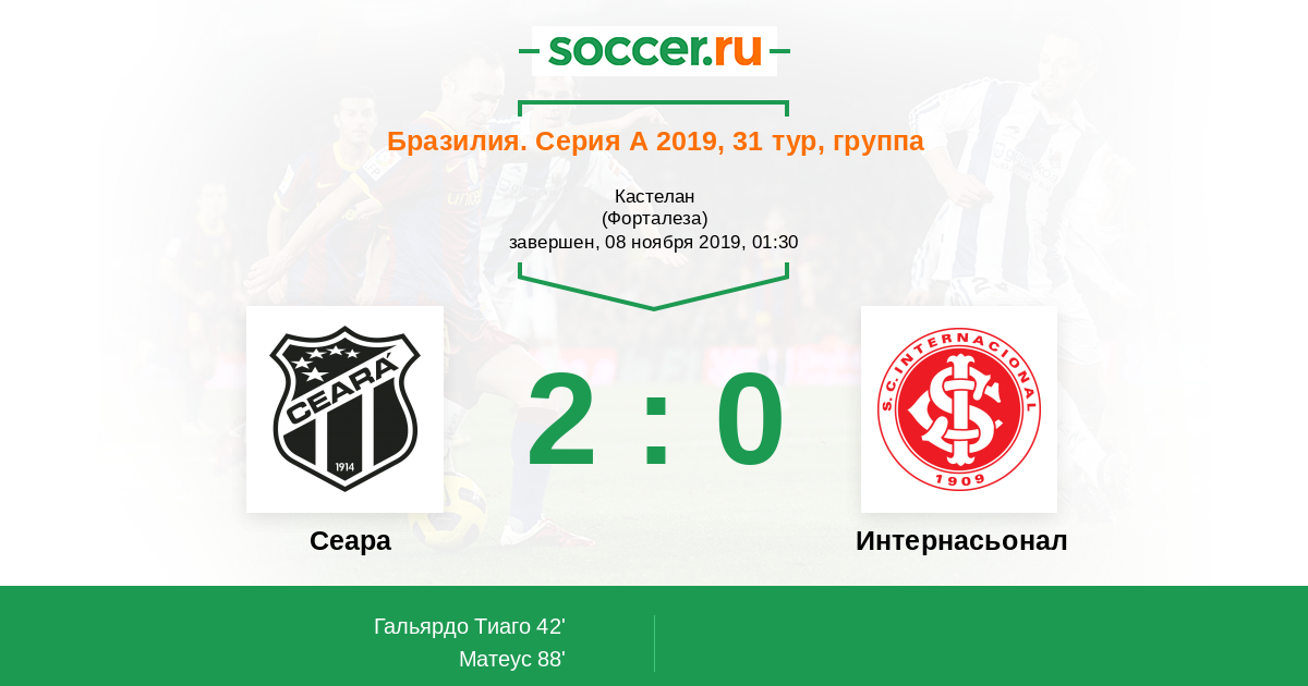 Протокол матча Сеара против Интернасьонал