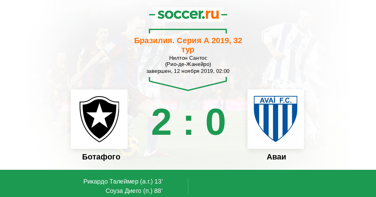 Протокол матча Ботафого против Аваи