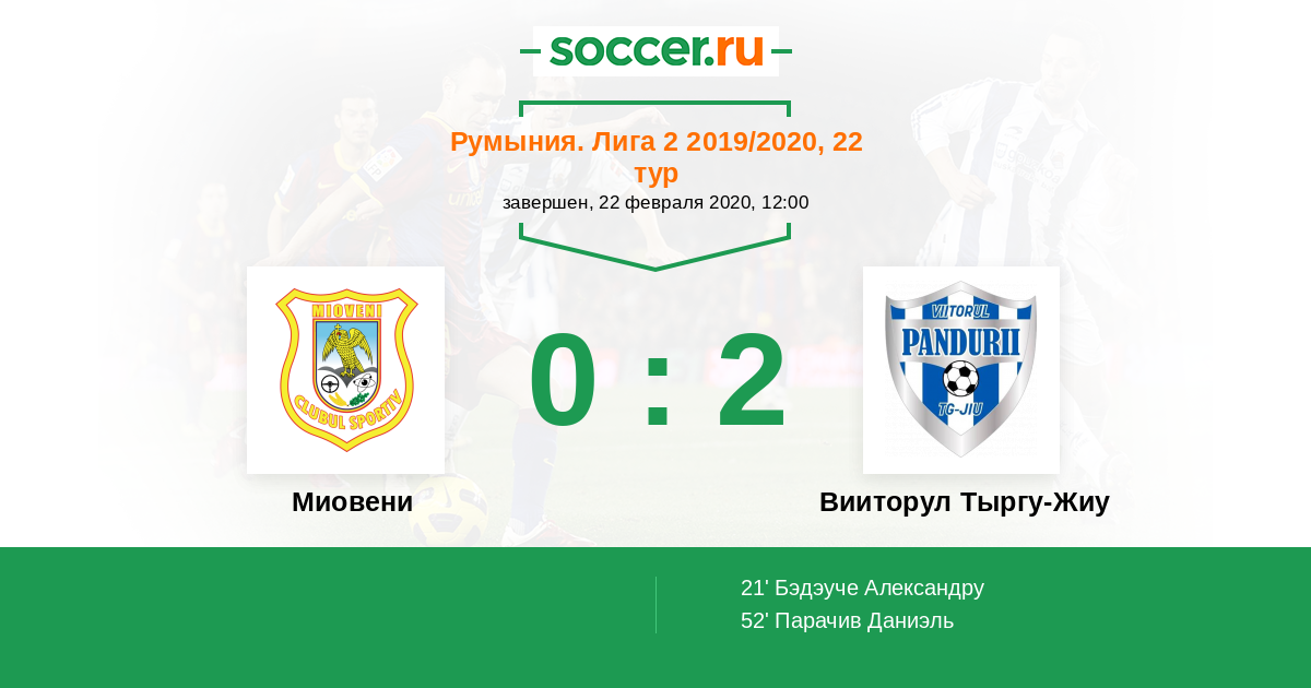 Протокол матча Миовени против Вииторул Тыргу-Жиу