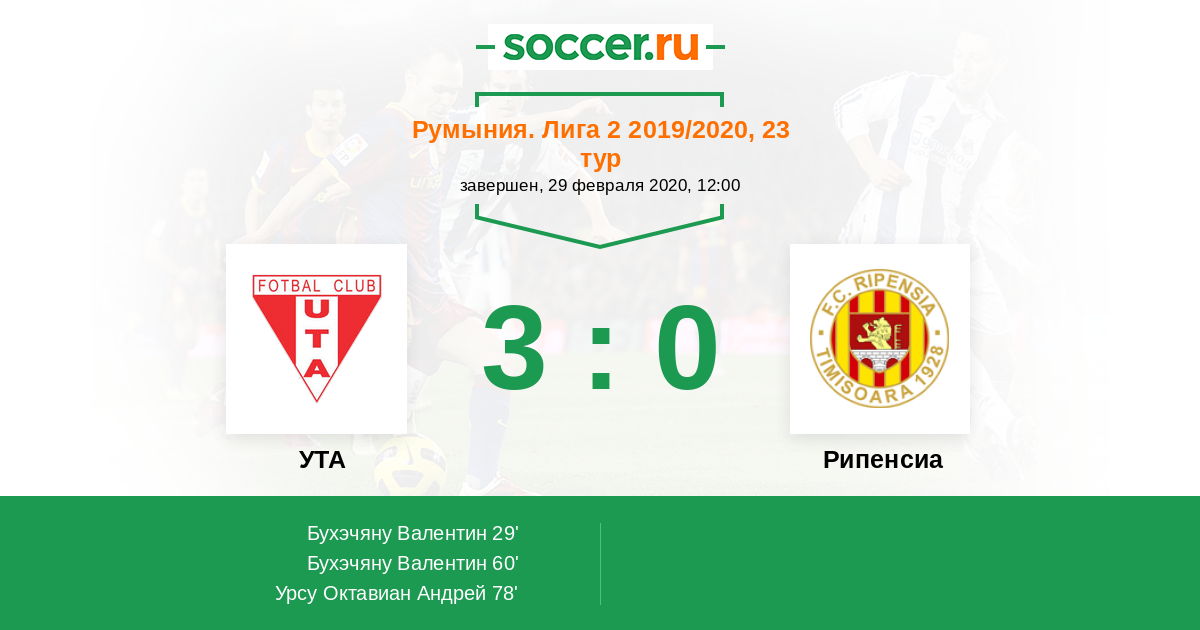 Протокол матча УТА против Рипенсиа