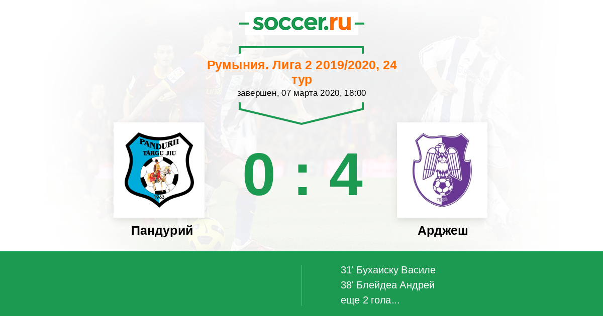 Протокол матча Пандурий против Арджеш