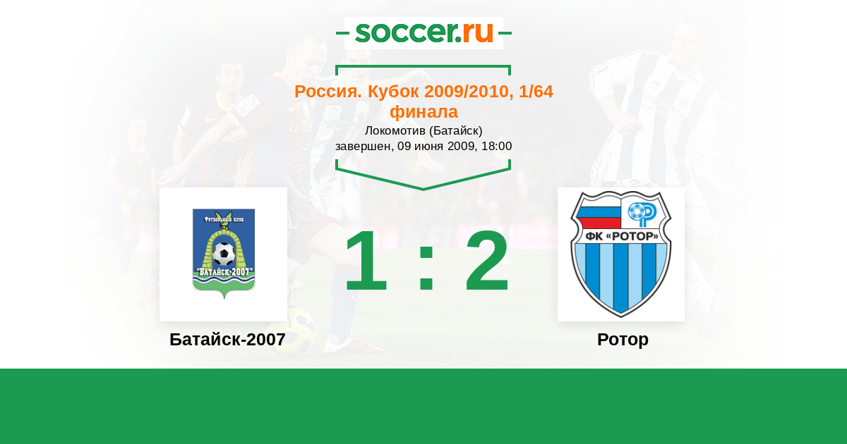 Россия. Вторая лига. Группа 1 06.08.2009 Ротор Логотип футбольный клуб Ротор (Волгоград) 0:3 Логотип футбольный клуб Батайск-2007 Батайск-2007
