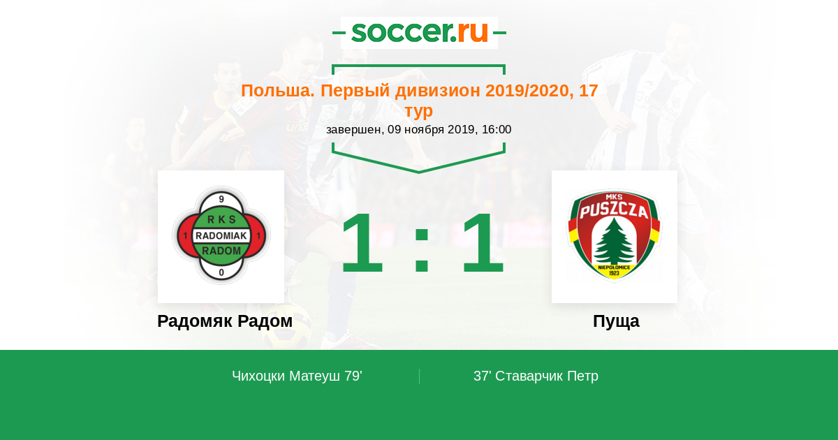 Протокол матча Радомяк Радом против Пуща