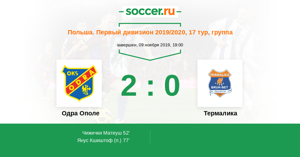 Протокол матча Одра Ополе против Термалика