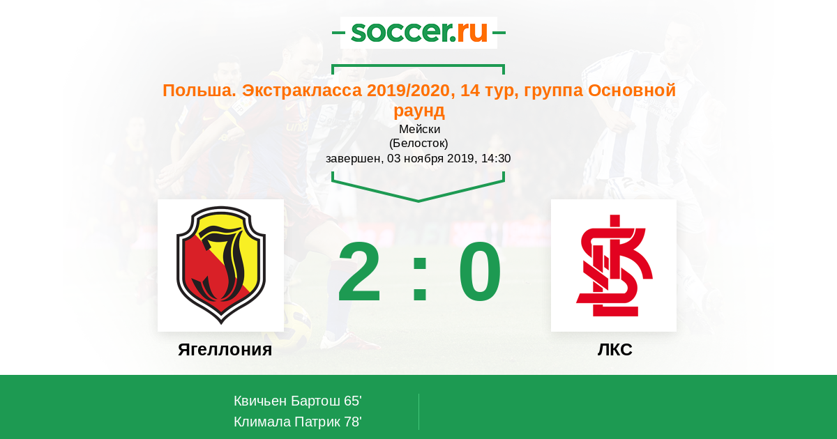 Протокол матча Ягеллония против ЛКС