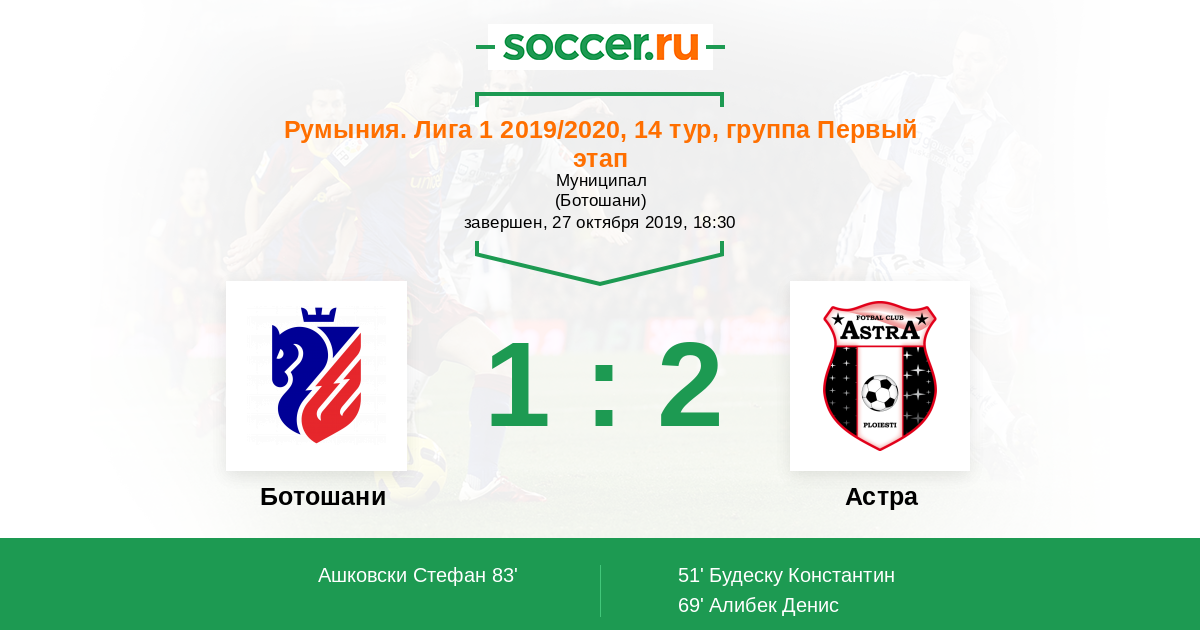 51' (0:1) Будеску Константин (50) (Алибек Денис (7))