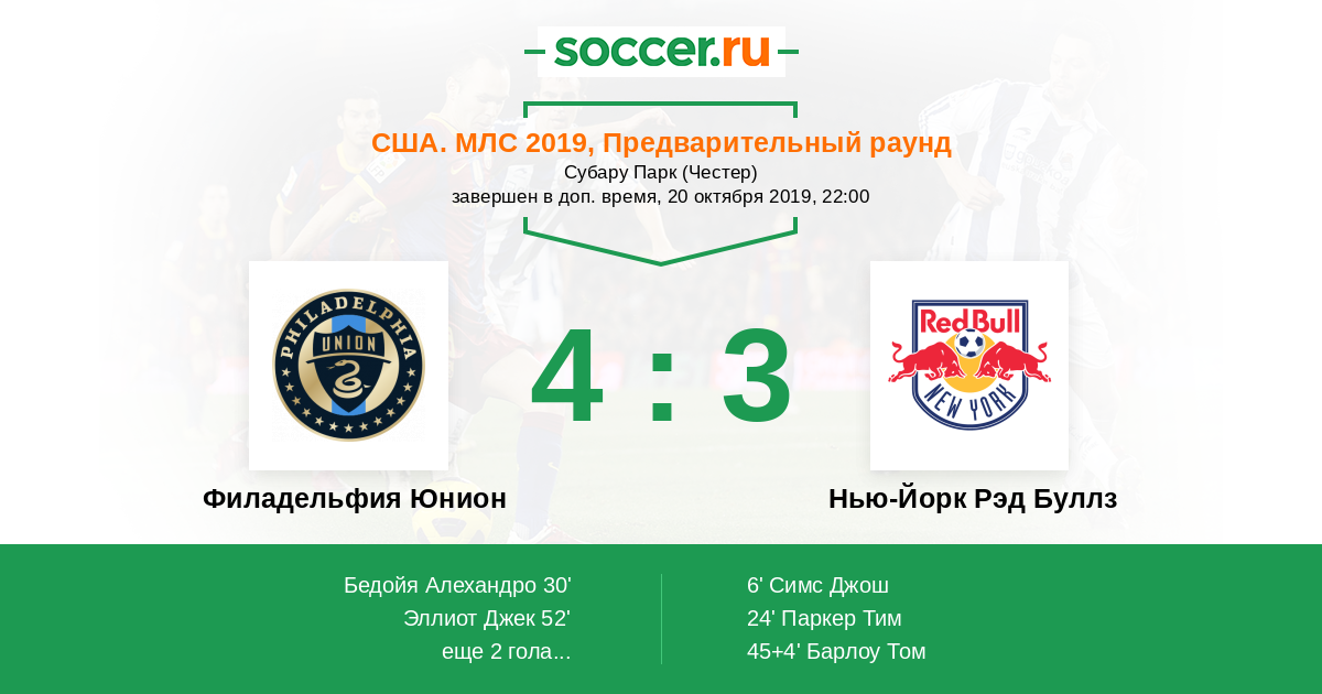 Протокол матча Филадельфия Юнион против Нью-Йорк Рэд Буллз