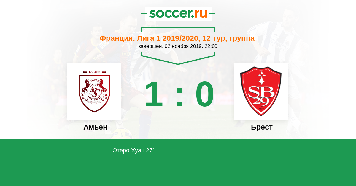 Протокол матча Амьен против Брест