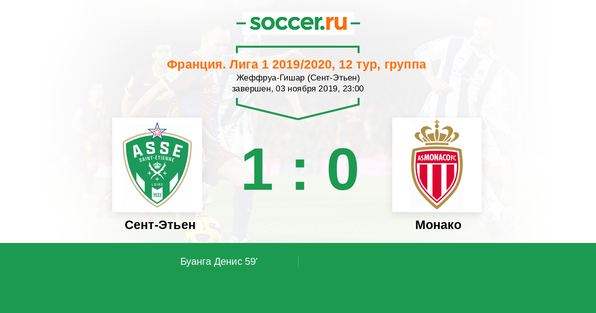 Протокол матча Сент-Этьен против Монако