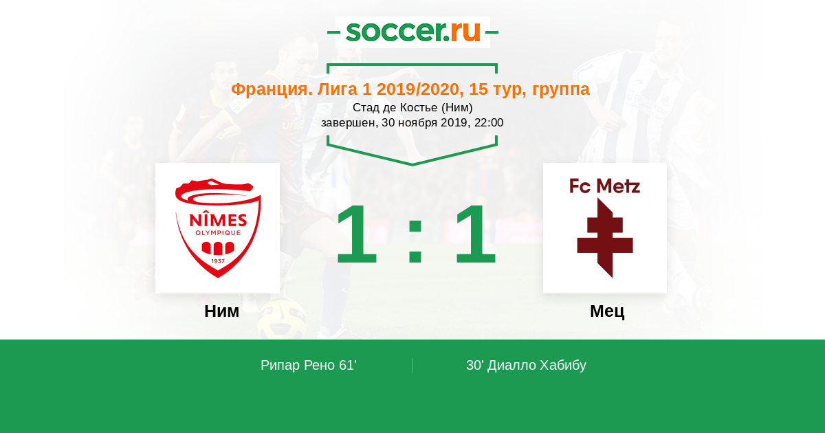 61' (1:1) Рипар Рено (20) (Дульевич Харис (17))