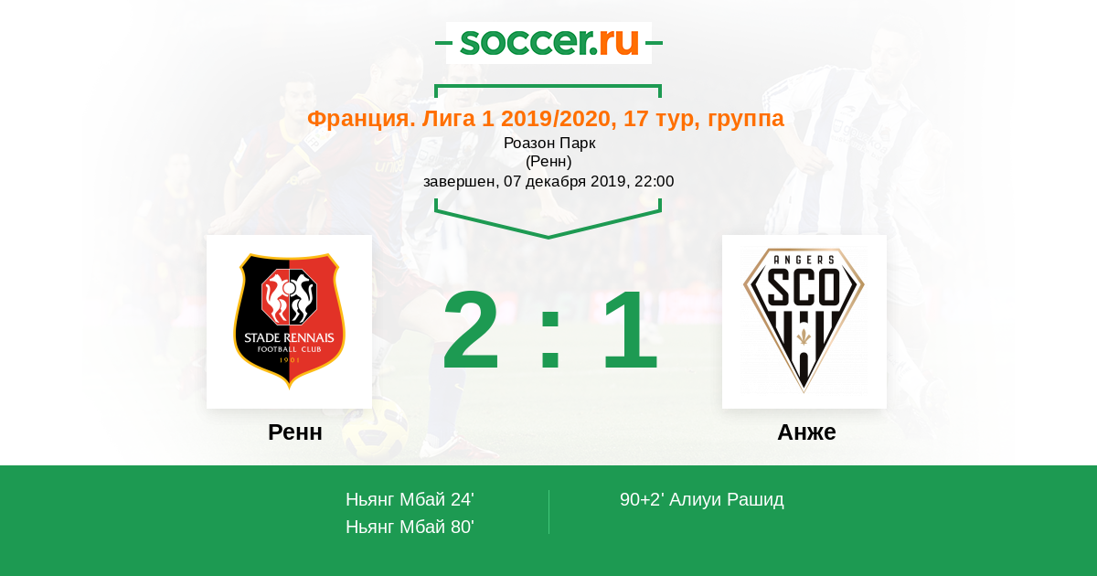 Протокол матча Ренн против Анже