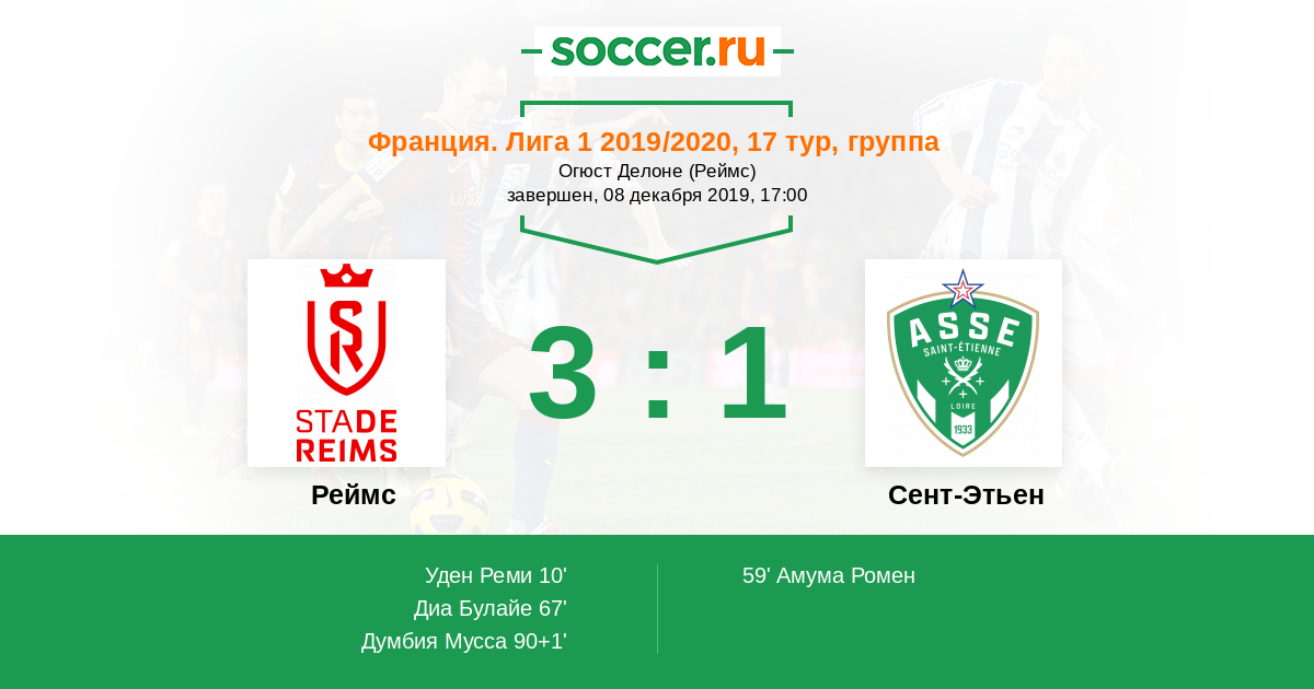 Протокол матча Реймс против Сент-Этьен