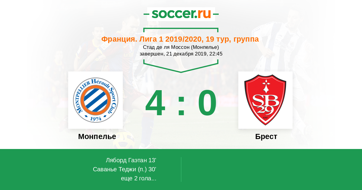Протокол матча Монпелье против Брест