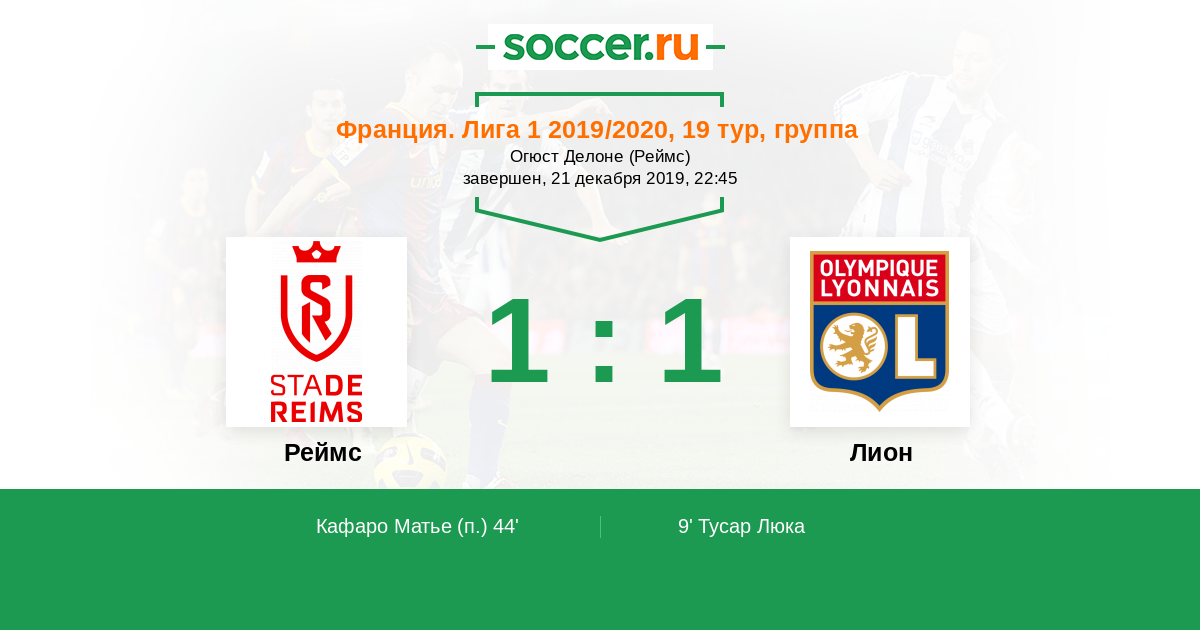 Протокол матча Реймс против Лион