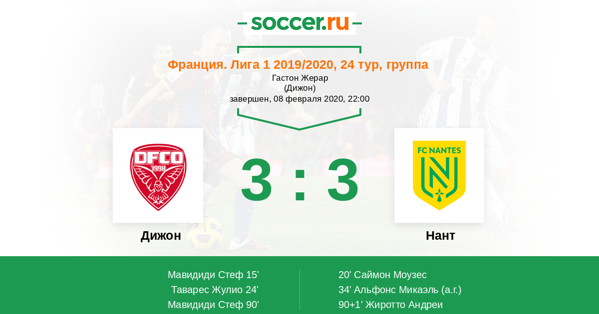 Протокол матча Дижон против Нант