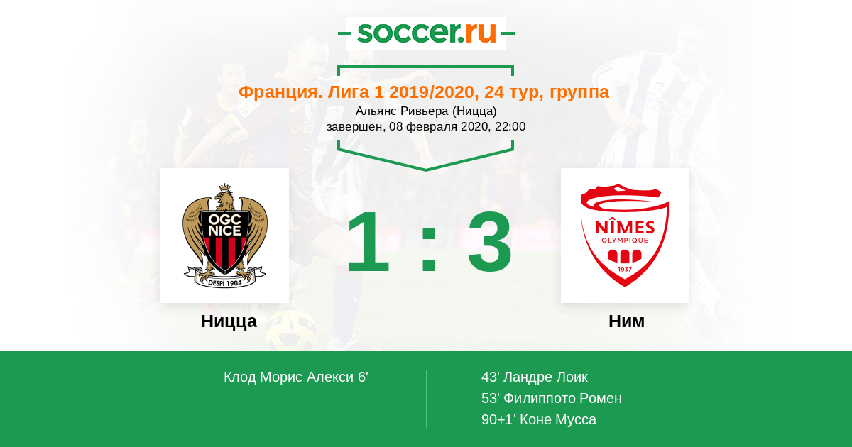 Протокол матча Ницца против Ним