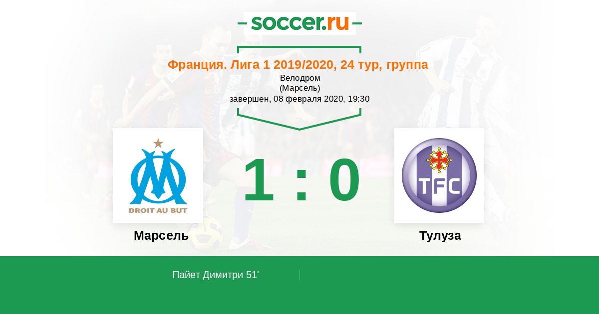 Протокол матча Марсель против Тулуза