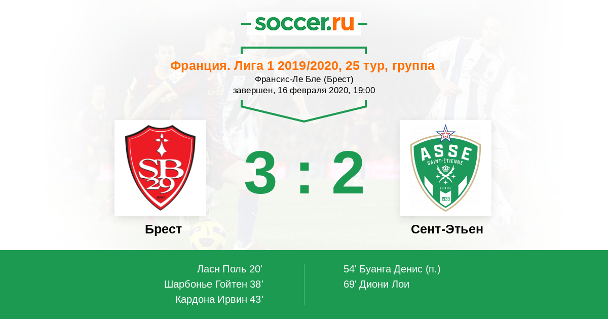 20' (1:0) Ласн Поль (13) (Грандсер Самуэль (25))