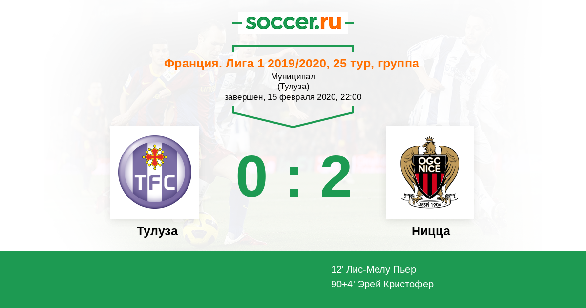 Протокол матча Тулуза против Ницца