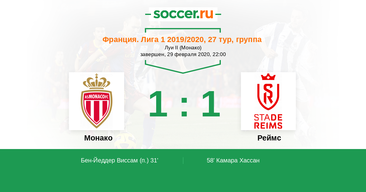Протокол матча Монако против Реймс