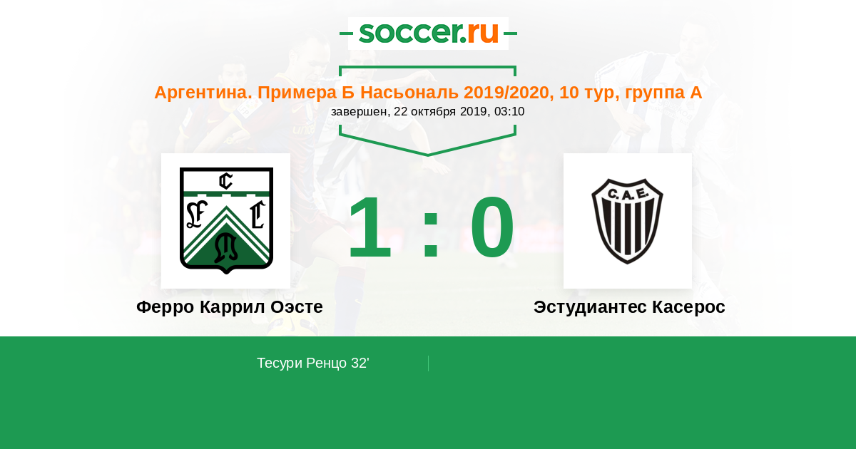 Протокол матча Ферро Каррил Оэсте против Эстудиантес Касерос