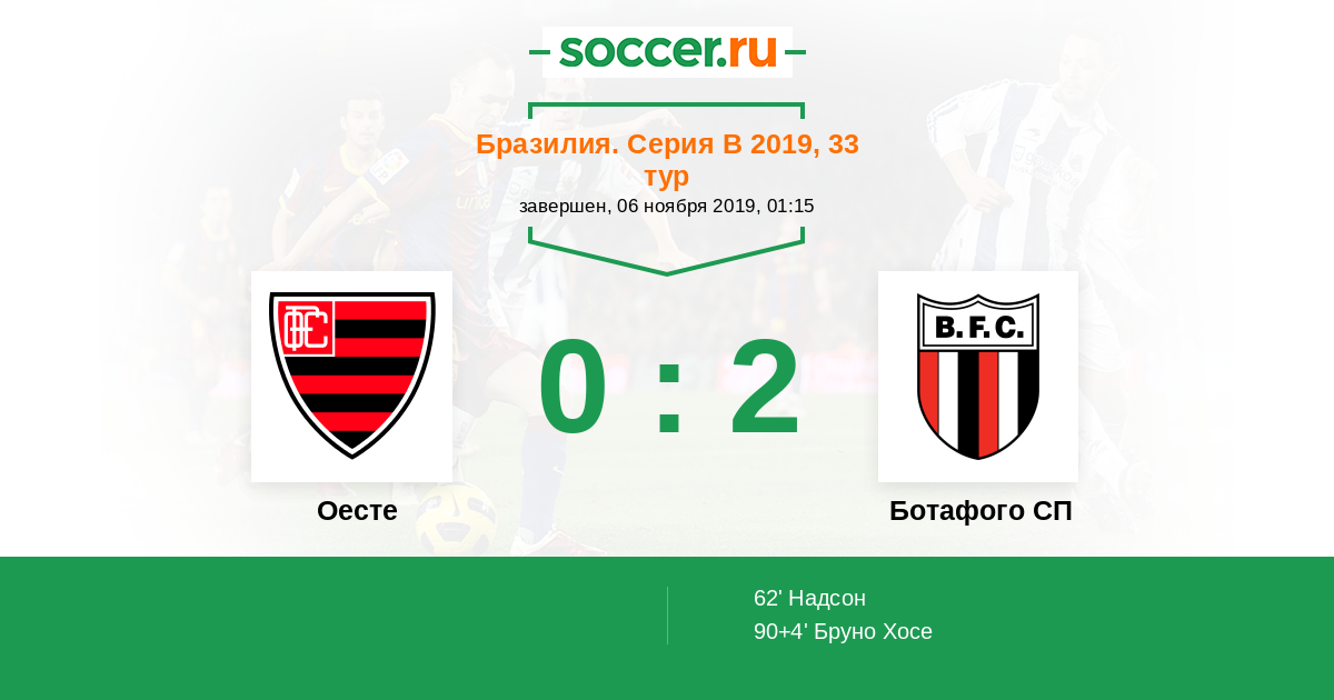 Протокол матча Оесте против Ботафого СП