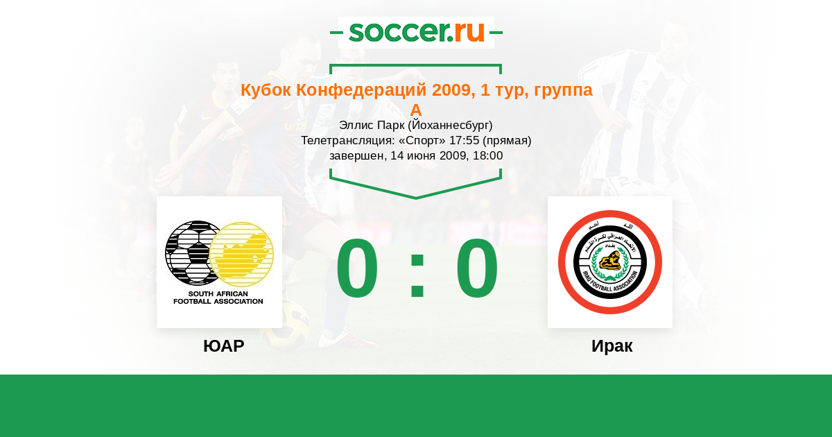 Протокол матча ЮАР против Ирак