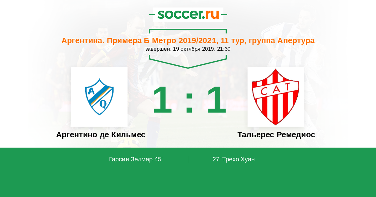 Протокол матча Аргентино де Кильмес против Тальерес Ремедиос