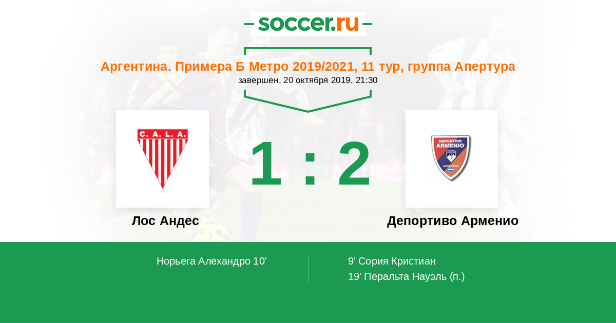 Протокол матча Лос Андес против Депортиво Арменио
