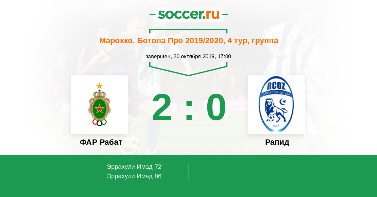 Протокол матча ФАР Рабат против Рапид