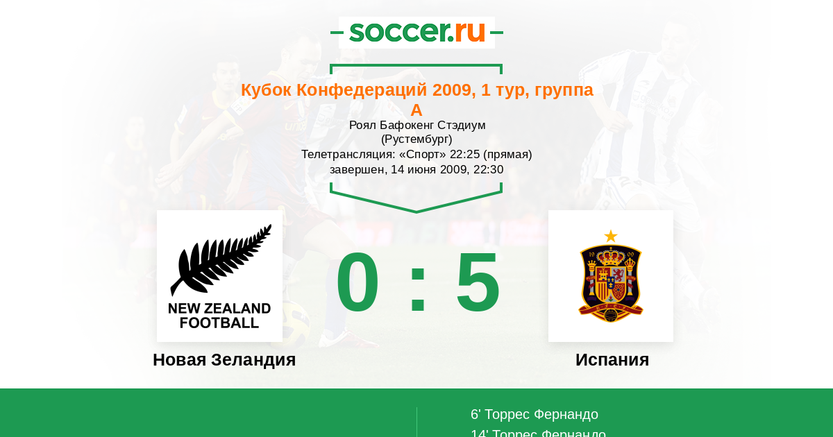 Протокол матча Новая Зеландия против Испания