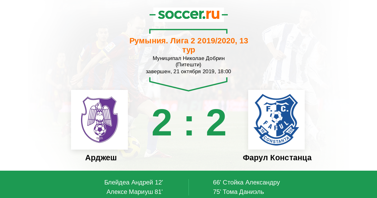 Протокол матча Арджеш против Фарул Констанца