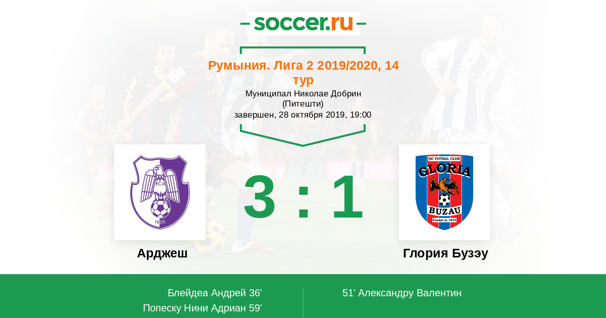 Протокол матча Арджеш против Глория Бузау
