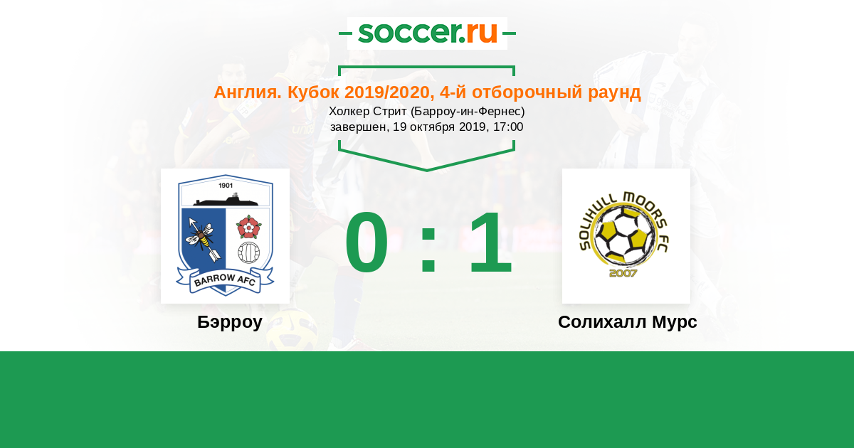 Англия. Национальная Лига 14.09.2019 Бэрроу Логотип футбольный клуб Бэрроу (Бэрроу-и-Фарнесс) 3:0 Логотип футбольный клуб Солихалл Мурс Солихалл Мурс