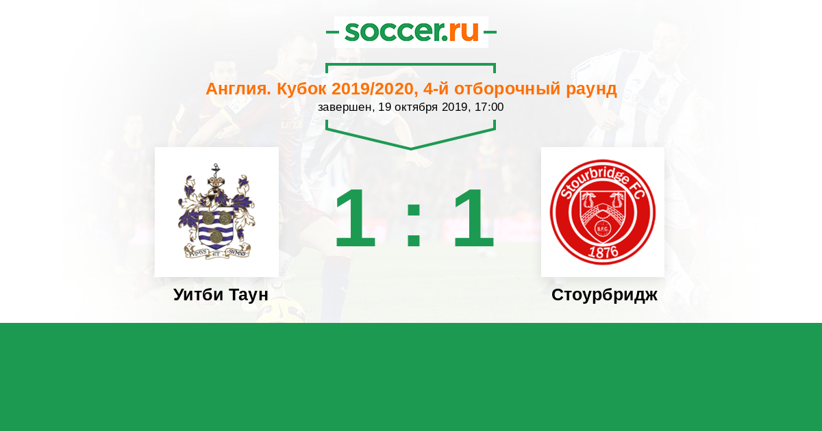 Англия. Кубок 21.10.2019 Стоурбридж Логотип футбольный клуб Стоурбридж 3:2 Логотип футбольный клуб Уитби Таун Уитби Таун
