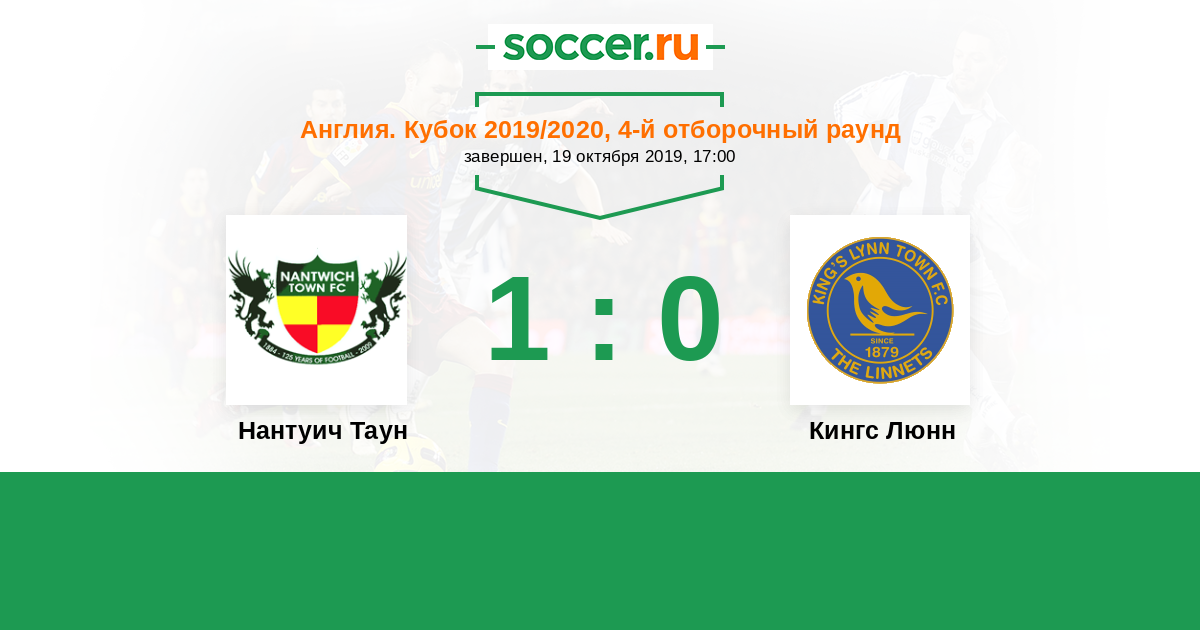 Англия. Истмийский дивизион 06.09.2014 Кингс Люнн Логотип футбольный клуб Кингс Люнн 2:1 Логотип футбольный клуб Нантуич Таун Нантуич Таун