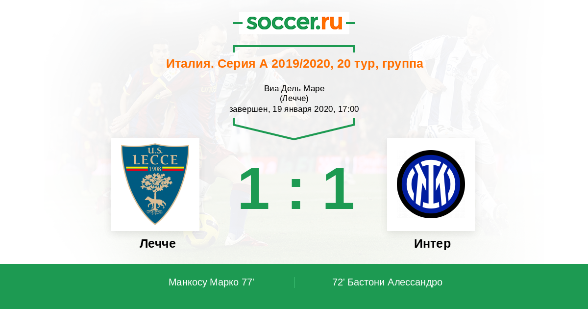 Протокол матча Лечче против Интер