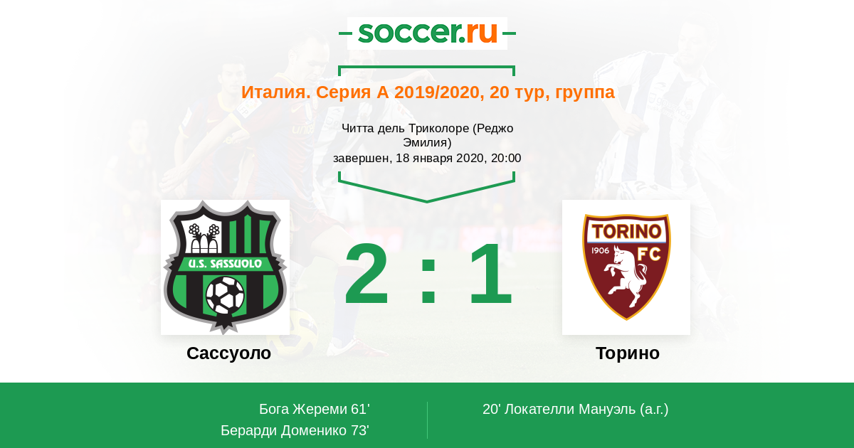 Протокол матча Сассуоло против Торино