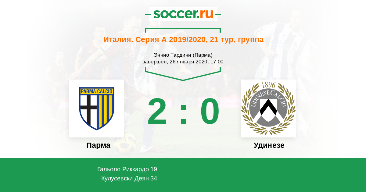 Протокол матча Парма против Удинезе