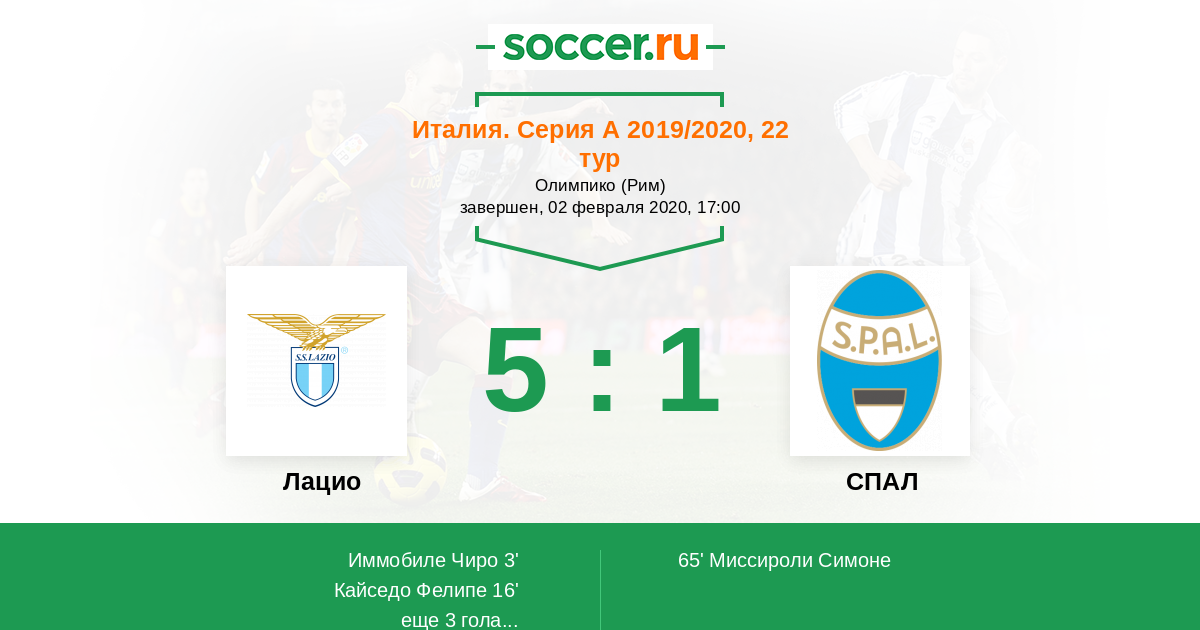 29' (3:0) Иммобиле Чиро (17) (Лаццари Мануэль (29))