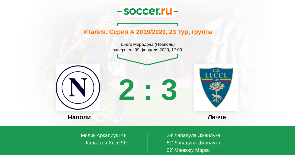 Протокол матча Наполи против Лечче