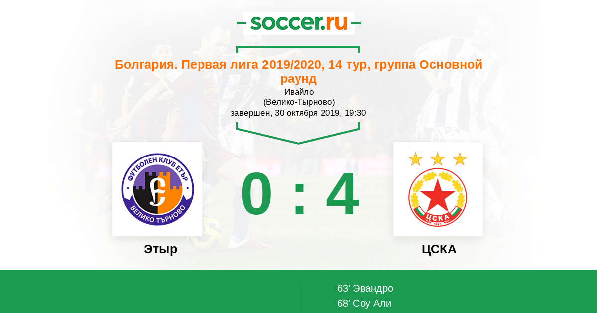 Протокол матча Этыр против ЦСКА