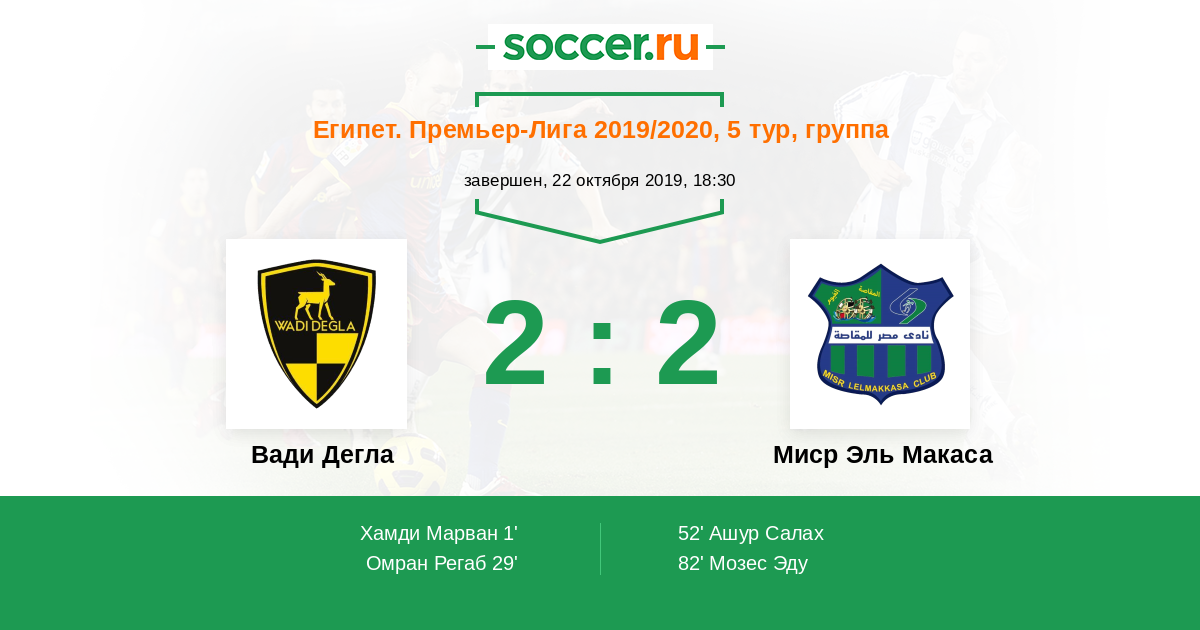Протокол матча Вади Дегла против Миср Эль Макаса