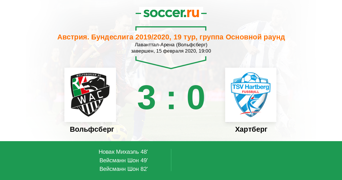 Протокол матча Вольфсберг против Хартберг