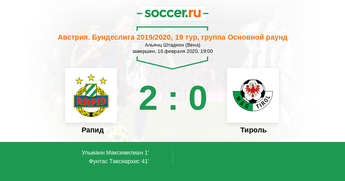 Протокол матча Рапид против Тироль
