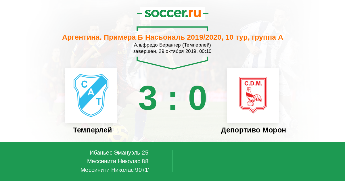 Протокол матча Темперлей против Депортиво Морон