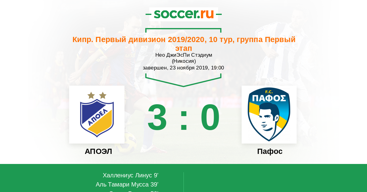 Протокол матча АПОЭЛ против Пафос