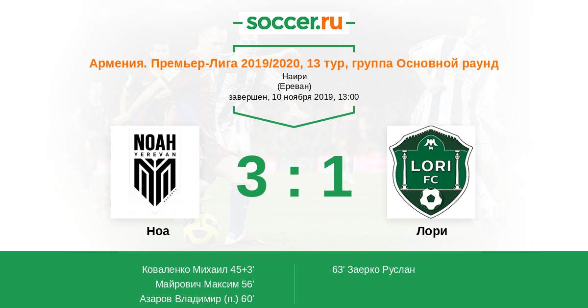 Протокол матча Арцах против Лори