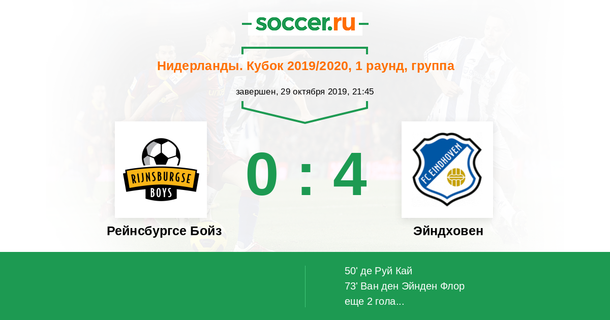 Протокол матча Рейнсбургсе Бойз против Эйндховен